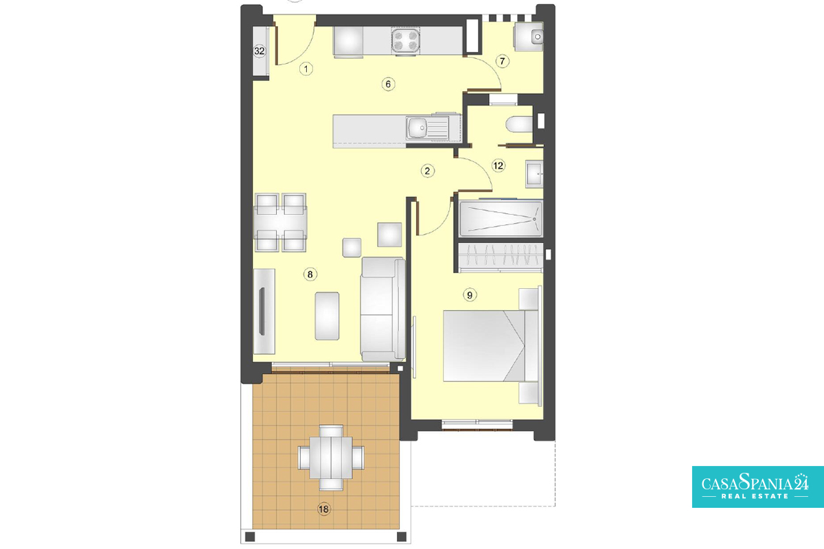 Komplekset er designet for å tilby store innendørsrom med vakre hager og torg som inkluderer et stort bassengområde med boblebad, omkranset av en stor naturlig gressplen med dusjer, solsenger og parasoller som også nyter felles WIFI. Sjenerøse fellesområder har også en lekeplass innenfor en bevoktet inngjerdet omkrets. Dermed har fase 7 av boligkomplekset mye å tilby: utmerkede fasiliteter, en rolig beliggenhet i spektakulære naturomgivelser, tilgang til alle daglige tjenester og utmerkede sportsfasiliteter som komplekset tilbyr.