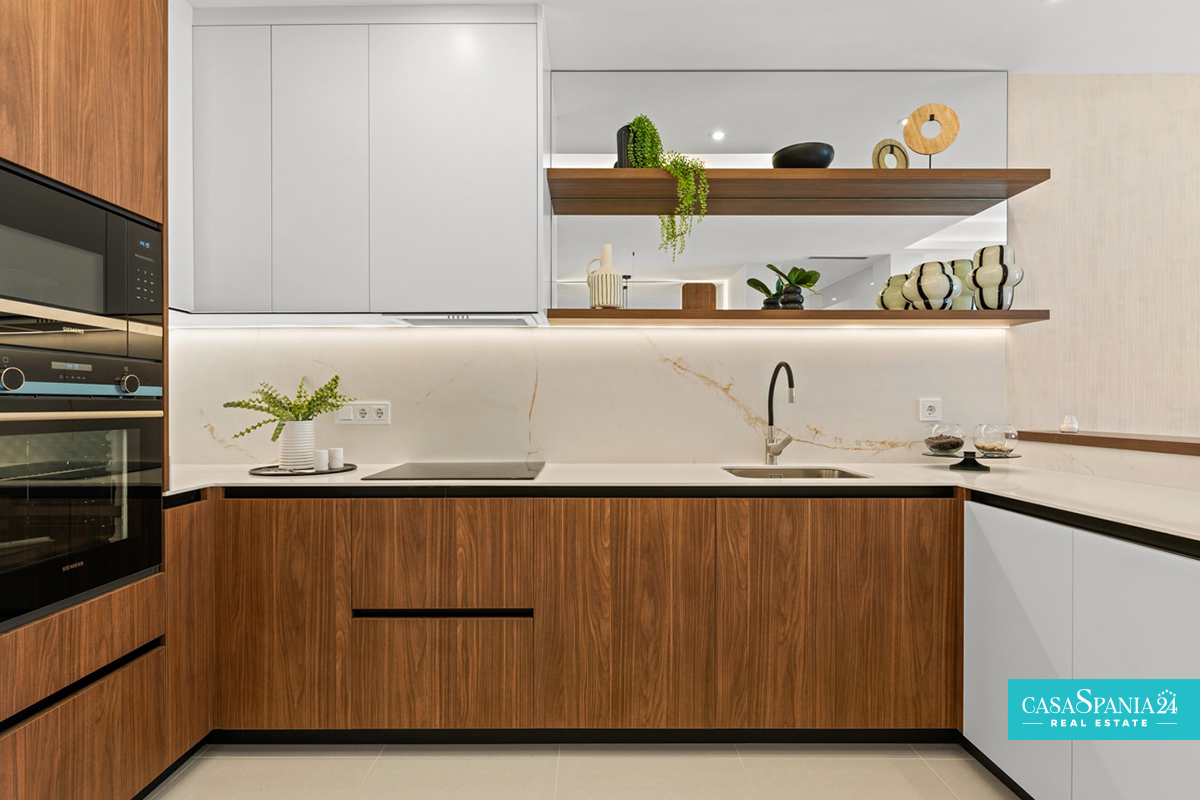 Komplekset tilbyr ulike typer leiligheter, inkludert enheter i første etasje med private hager og toppleiligheter med takterrasser. Hver leilighet har fullt utstyrte kjøkken med moderne hvitevarer og private parkeringsplasser.